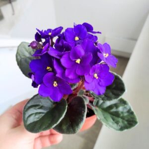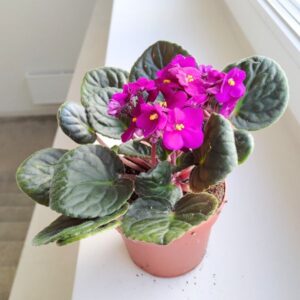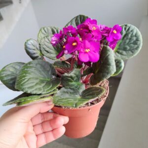 Wszystkie oferowane sadzonki są już ładnie wybarwione i bardzo dobrze ukorzenione a część z nich ma już nawet kwiatostany lub pączki kwiatowe. Sadzonki wysyłamy losowo. Ten okaz wybarwia się w zależności od poziomu nasłonecznienia i składników mineralnych, przy fiołkach pamiętamy o tym aby nie nawozić je nawozami z dużą zawartością boru, ponieważ stopuje to ich wzrost oraz nie nawozimy małych sadzonek do czasu uzyskania odpowiedniej wielkości rozety. Przy odpowiedniej dawce światła listki tego fiołka będą się wybarwiać na kolory kremowo różowe. Donica ok 5cm Wys ok 5-10cm Stanowisko: jasne, nie bezpośrednie słońce Podlewanie: lekko wilgotne podłoże, podlewać jak ziemia przeschnie najlepiej do podstawki. Podłoże: torf kokosowy wymieszany z perlitem i gruboziarnistym piaskiem lub wermikulitem - wypróbuj nasze podłoże do fiołków Dla zwierząt: jest bezpiecznaRoślina obecnie znajduje się w podłożu produkcyjnym. Po otrzymaniu rośliny do domu poczekaj ok 2-4 tygodnie i wymień podłoże na nowe, dobierz je w kategorii: PODŁOŻA DO ROŚLIN DONICZKOWYCH