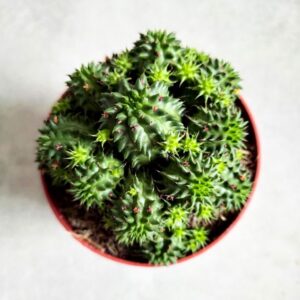 Donica 10,5cm Wys z donicą ok 13-16cm Stanowisko: jasne, słoneczne, latem uważać na ostre słońce Podlewanie: co ok 2-4 tygodnie jak podłoże przeschnie Podłoże: ziemia do sukulentów, czyli zmieszana z perlitem, piaskiem gruboziarnistym i drobnoziarnistym keramzytem, woda nie może zalegać w korzeniach, wypróbuj nasze podłoże do sukulentów  Dla zwierząt: nie jest bezpieczna