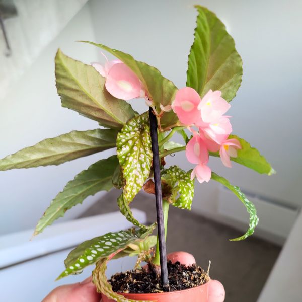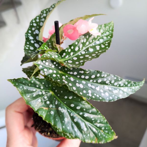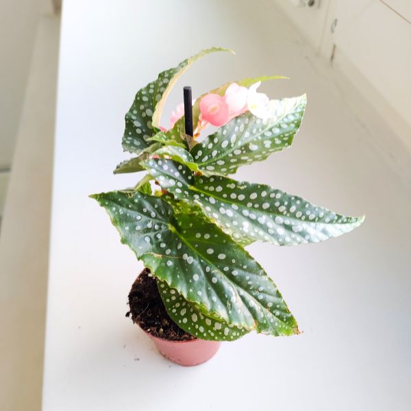 Donica szer. 6cm Wys z donicą ok 10-15cm Stanowisko: jasne, nie bezpośrednie słońce Podlewanie: lekko wilgotne podłoże, podlewać jak ziemia przeschnie najlepiej do podstawki. Begonie nie lubią polewania wodą po liściach ani zbyt długiego przesuszania podłoża Podłoże: ziemia uniwersalna wymieszana z torfem, perlitem i gruboziarnistym piaskiem lub wypróbuj naszej autorskiej mieszanki Podłoże do Begonii Dla zwierząt: nie jest bezpiecznaRoślina obecnie znajduje się w podłożu produkcyjnym. Po otrzymaniu rośliny do domu poczekaj ok 2-4 tygodnie i wymień podłoże na nowe, dobierz je w kategorii: PODŁOŻA DO ROŚLIN DONICZKOWYCH