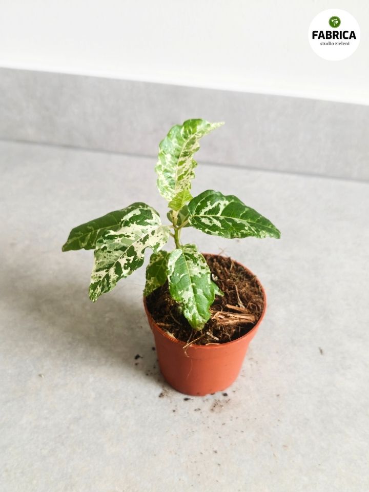 Donica szer 10-12cm Wys z doniczką ok 15-24cm Stanowisko: jasne, unikać bezpośredniego słońca Podlewanie: podłoże lekko wilgotne, przed następnym podlaniem poczekać aż ziemia przeschnie na kilka cm od góry Podłoże: można je przygotować na torfie kokosowym zmieszanym z ziemią kompostową oraz perlitem, dużo rozluźniaczy podłoża, oprócz perlitu można dodać trochę piasku gruboziarnistego i nie zapomnieć o uzupełnianiu minerałów poprzez nawożenie, zobacz nasze podłoże od epipremnum Dla zwierząt: nie jest bezpiecznaRoślina obecnie znajduje się w podłożu produkcyjnym. Po otrzymaniu rośliny do domu poczekaj ok 2-4 tygodnie i wymień podłoże na nowe, dobierz je w kategorii: PODŁOŻA DO ROŚLIN DONICZKOWYCH