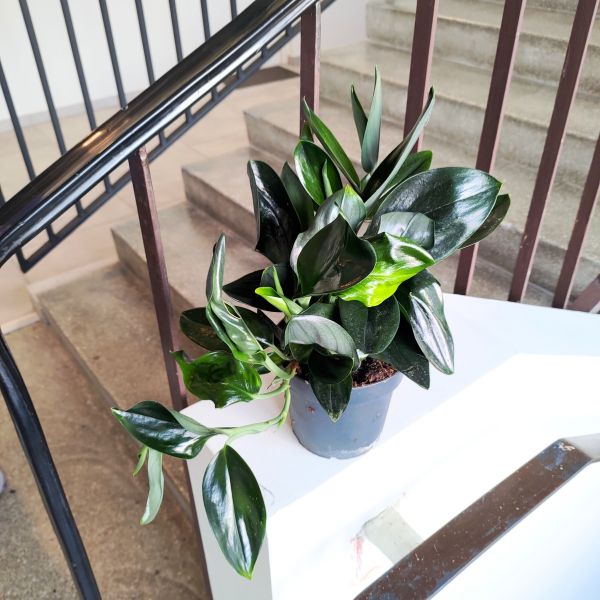 Donica 6cm Wys 10-15cm Stanowisko: jasne, unikać bezpośredniego słońca Podlewanie: podłoże lekko wilgotne, przed następnym podlaniem poczekać aż ziemia przeschnia na kilka cm od góry Podłoże: można je przygotować na torfie kokosowym zmieszanym z ziemią kompostową oraz perlitem, dużo rozluźniaczy podłoża, oprócz perlitu można dodać trochę piasku gruboziarnistego i nie zapomnieć o uzupełnianiu minerałów poprzez nawożenie lub wypróbuj naszej autorskiej mieszanki Podłoże do Epipremnum, Scindapsus, Philodendron Scandens (młode sadzonki wiszące w donicach Dla zwierząt: nie jest bezpiecznaEpipremnum aureum 'N'Joy', popularnie znany jako scindapsus złocisty N'Joy, to urzekająca odmiana z rodziny obrazkowatych, która zachwyca swoim efektownym, pstrym ulistnieniem. Ta odmiana wyróżnia się małymi, sercowatymi liśćmi ozdobionymi uderzającą pstrokatością – wyraźnym kontrastem głębokiej zieleni i czystej bieli, przy czym wzory różnią się znacząco od liścia do liścia , tworząc niepowtarzalny, żywy efekt dekoracyjny. Epipremnum N'Joy to naturalnie występująca zmienna mutacja Epipremnum aureum, selektywnie hodowana dla swojego uderzającego białego i zielonego ulistnienia, która ma mniejsze, bardziej kompaktowe liście z wyraźną pstrością w porównaniu do innych odmian . Roślina pochodzi z lasów tropikalnych Azji Południowo-Wschodniej i jest znana ze swojej nieskomplikowanej natury , co czyni ją idealnym wyborem zarówno dla początkujących, jak i doświadczonych miłośników roślin.